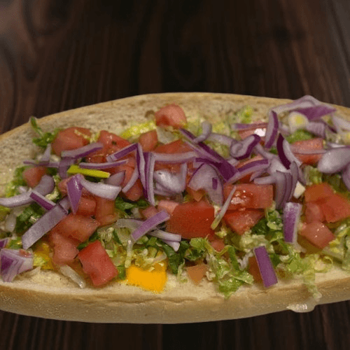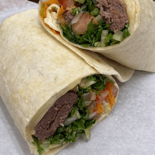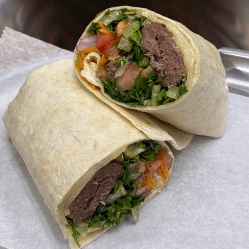 The mixture of ground chickpeas and broad beans. Tossed in spices and deep fries. Served with lettuce, tomato, and onion.
