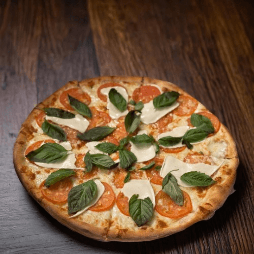Fresh tomatoes, fresh mozzarella, fresh garlic, and basil. No Sauce.