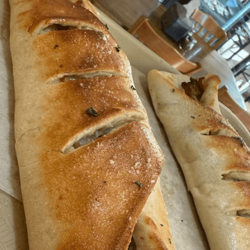 A thick dough crust stuffed with fresh parsley, feta cheese, and mozzarella.